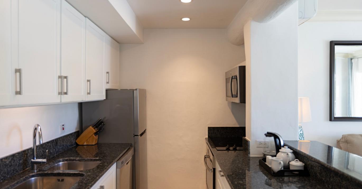Retreat in comfort within your 786 sq. ft. one bed king apartment suite with pool deck view. White on white infused with sandy wood porcelain floors and designer furnishings create a luxurious beach chic environment set amongst tropical gardens.