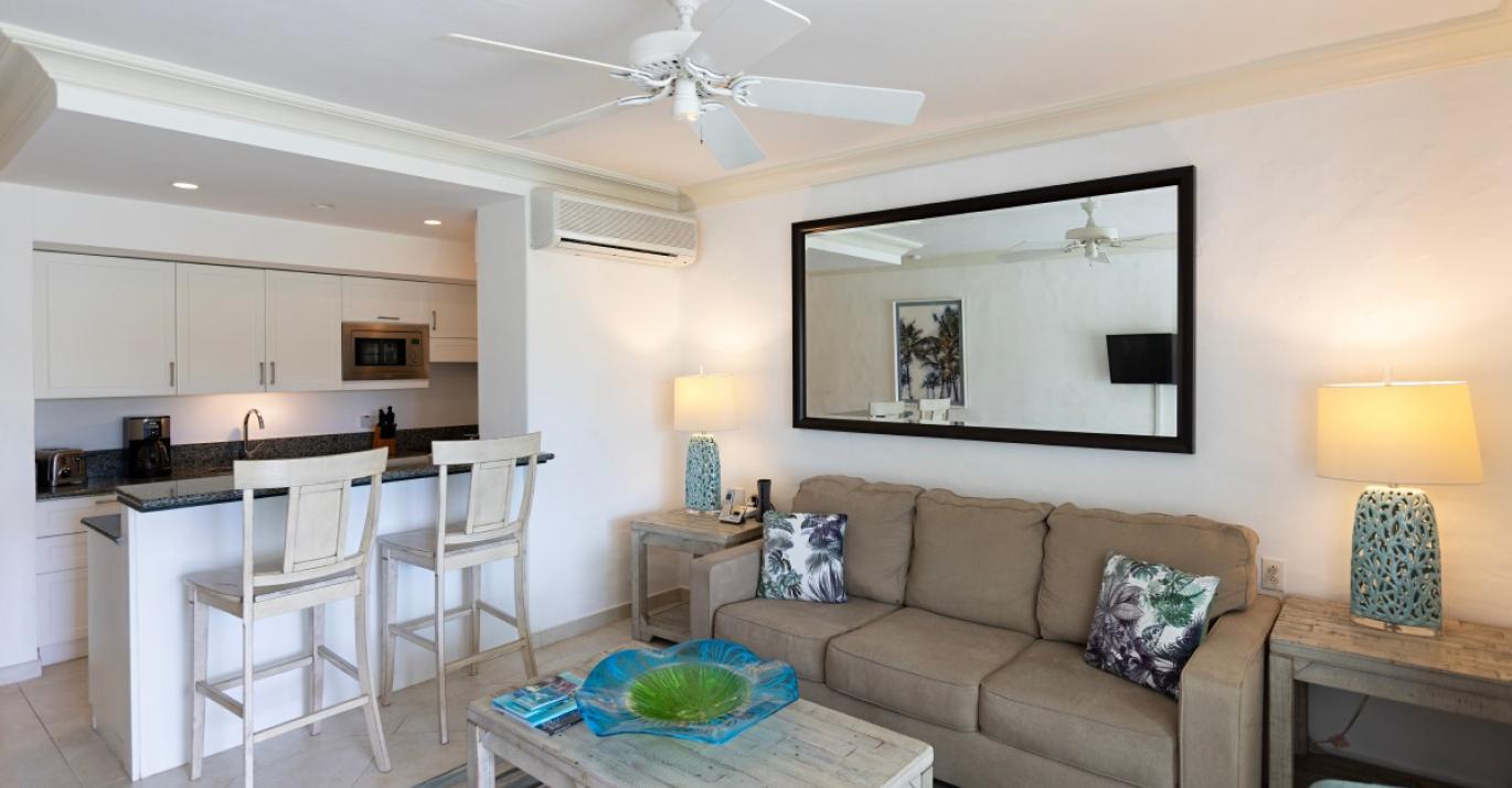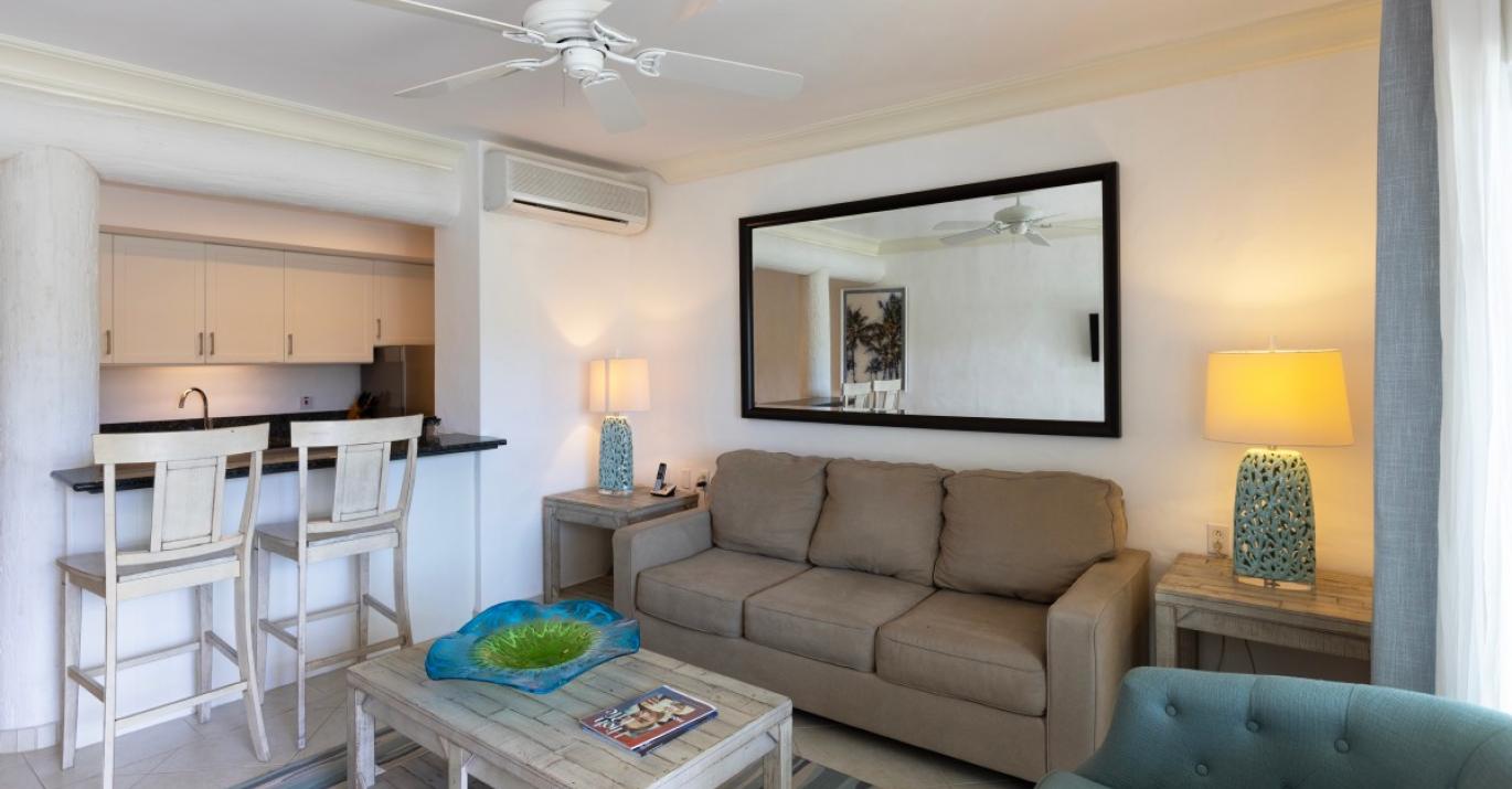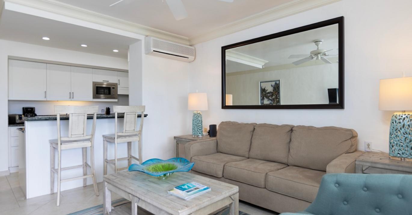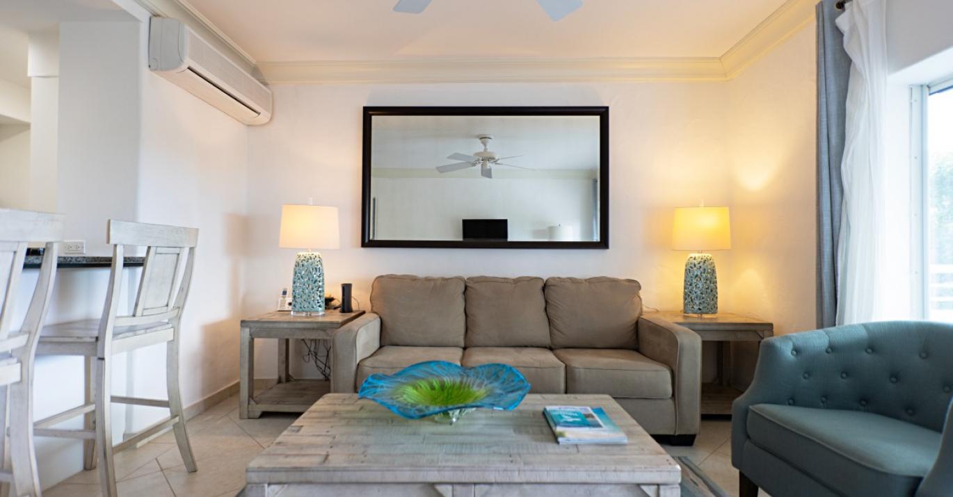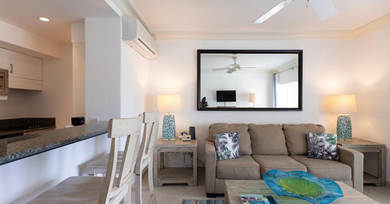 Glitter Bay 314 is a one-bedroom apartment with ocean views. Sitting on the third level on the last block of apartments from the beach, making the views the best of both worlds; lush gardens & the beautiful Caribbean Sea.