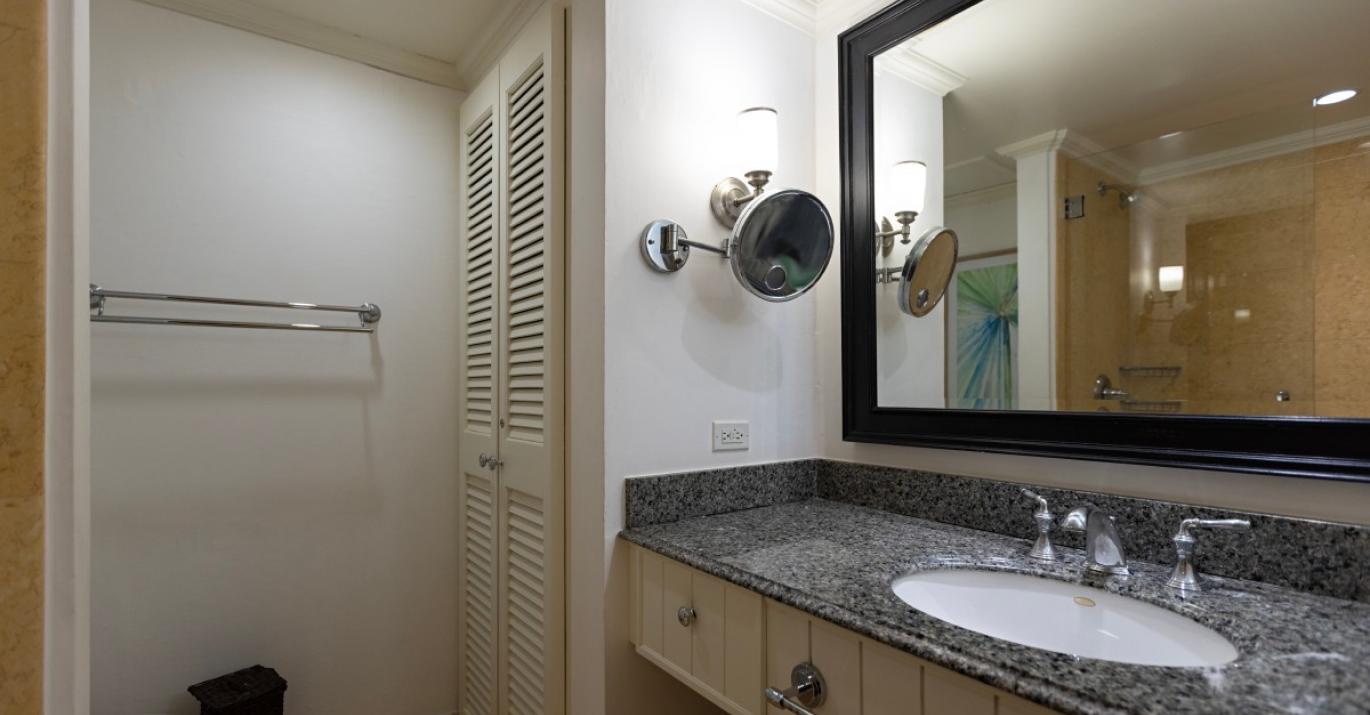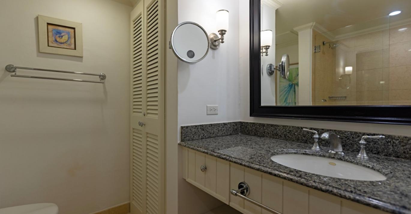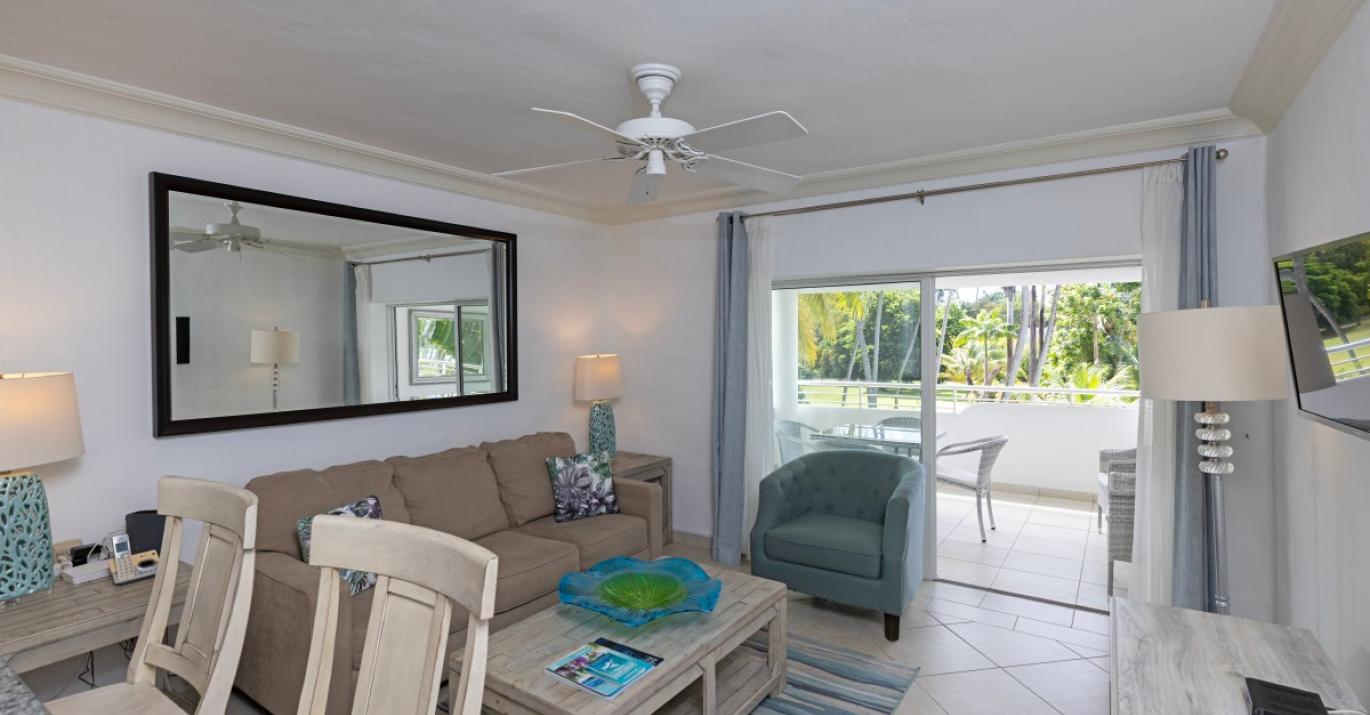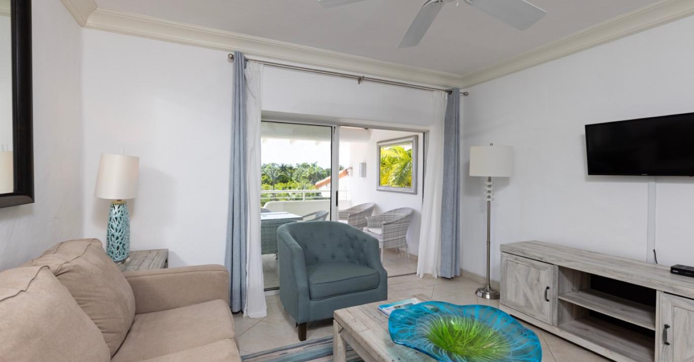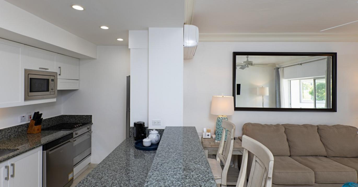 Glitter Bay 414 one-bedroom apartment overlooks the lush gardens and beyond to the Caribbean Sea. It sits on the fourth level on the last block of apartments from the beach, making the views the best of both worlds.