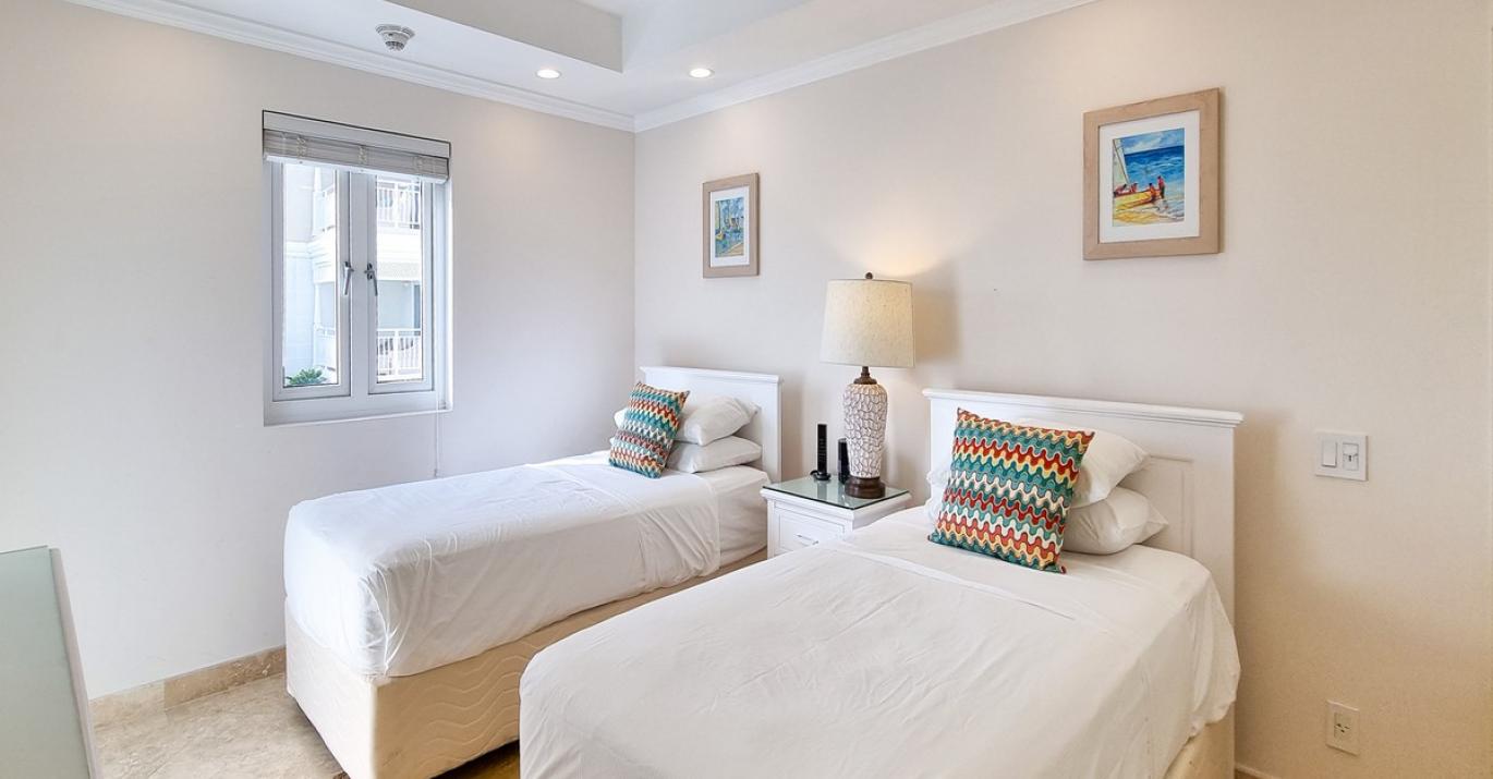 The grand primary bedroom welcomes in the same ocean views as the living areas while the two secondary bedrooms face the tropical greens of the community’s beautifully landscaped gardens. All bedrooms come equipped with air conditioning and ceiling fans.