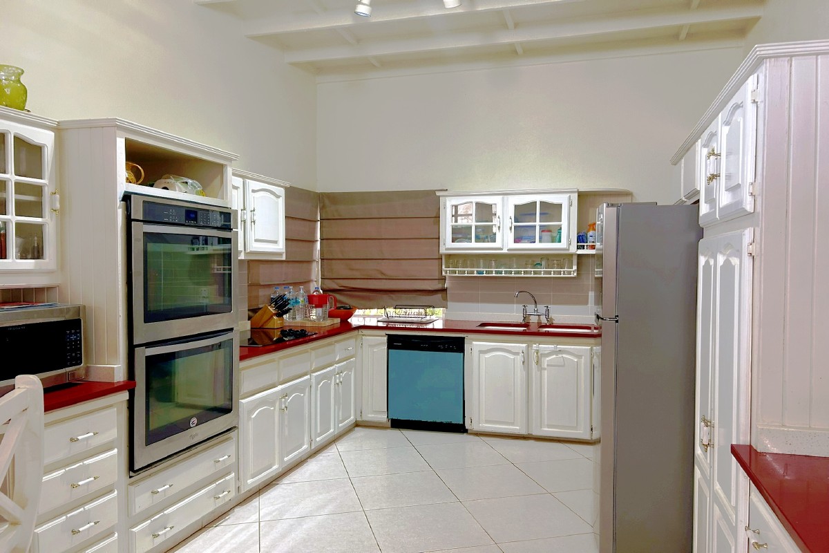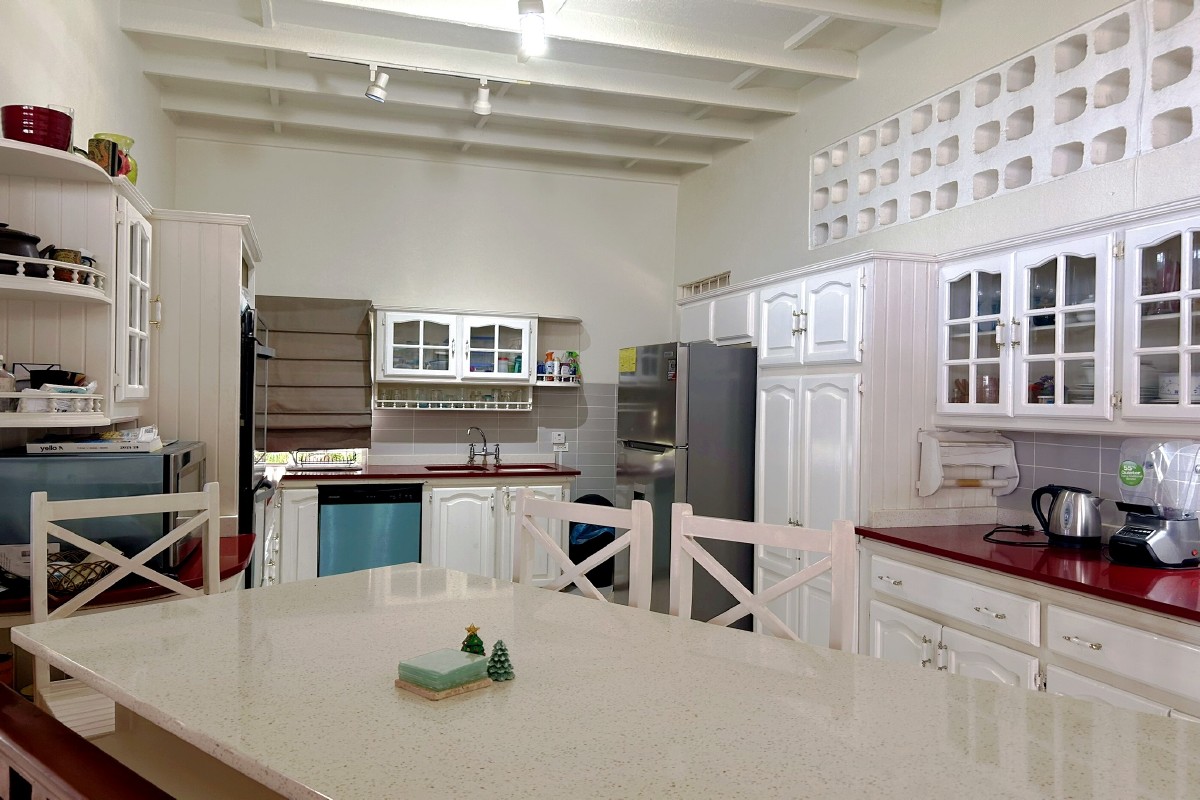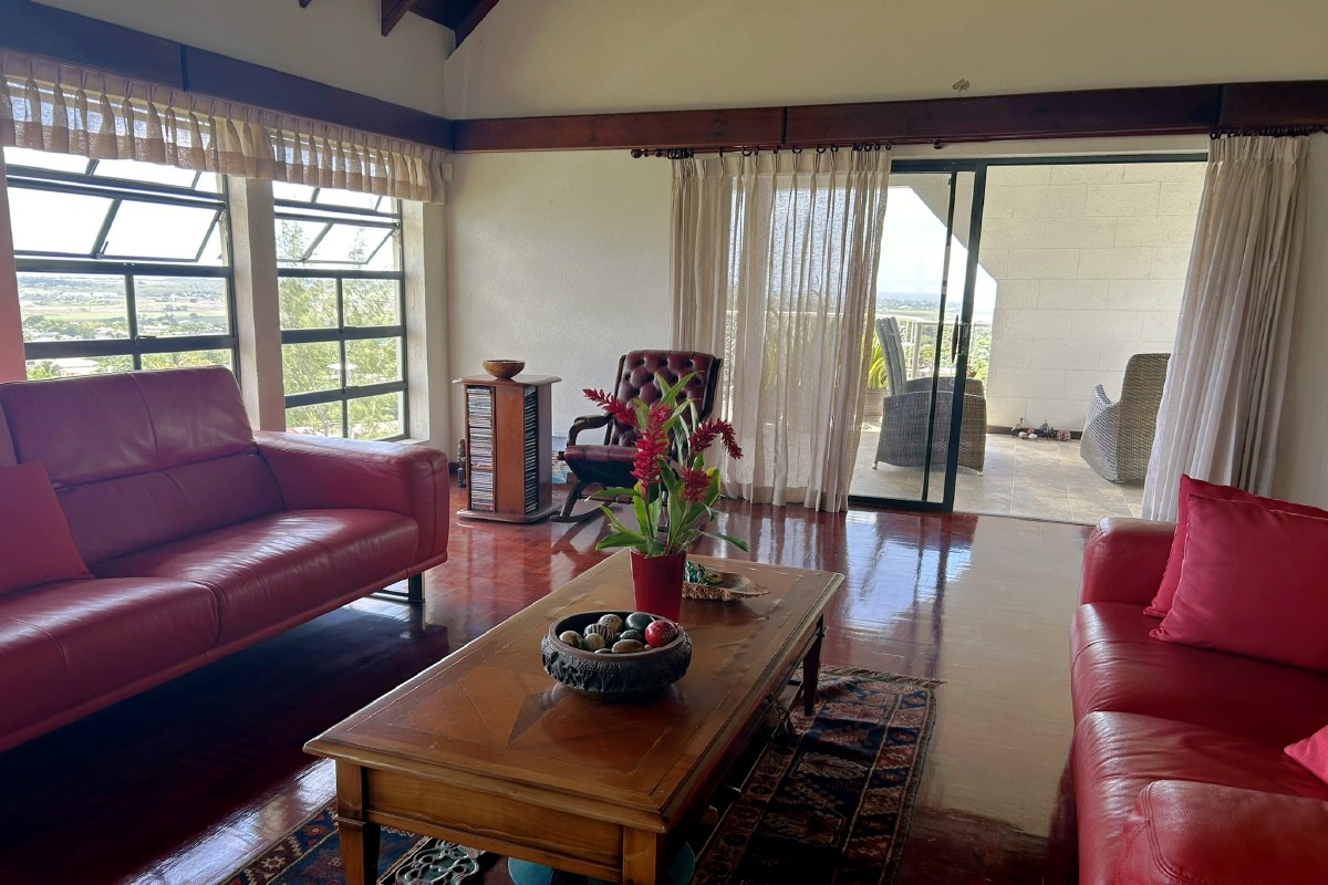 The Mount 5A is a charming four-bedroom multi-level home nestled in a quiet, elevated neighborhood, offering panoramic island views. Architecturally designed and built in the 1990s to make the most of the sloping land, the home is filled with natural light, featuring high ceilings and expansive windows that create an open and airy atmosphere.