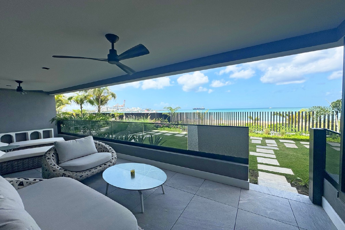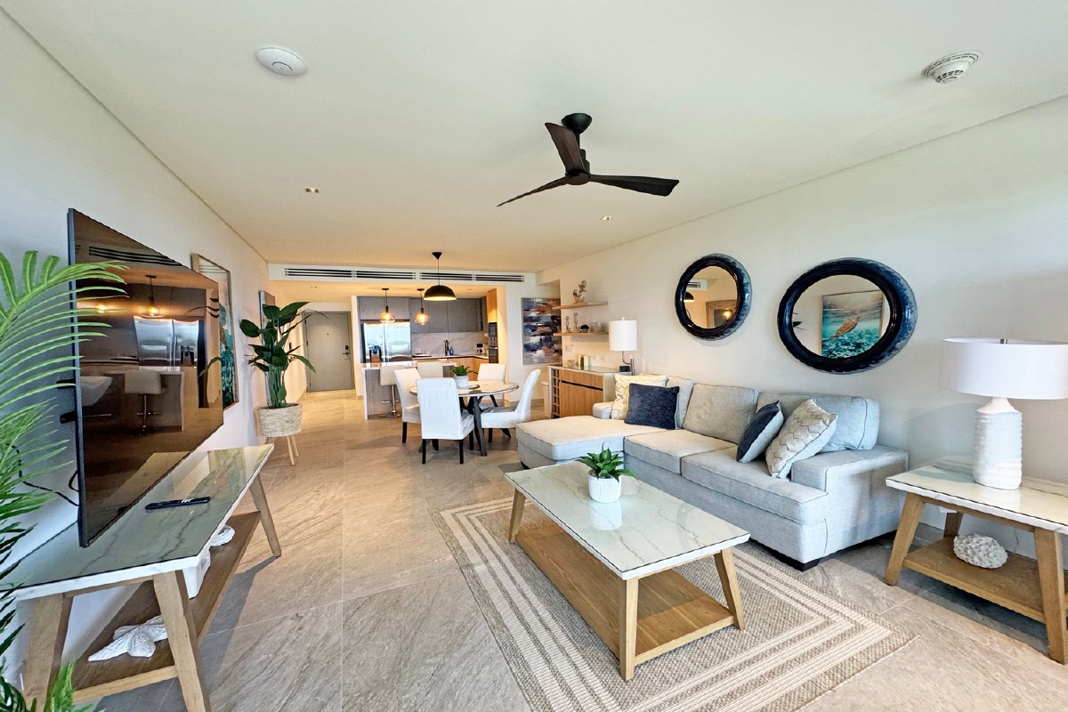 Enjoy open-plan living with high ceilings, floor-to-ceiling Low E glass, and a seamless flow to a spacious patio that captures pristine sea views. The master bedroom opens onto the terrace with direct sea views, while the sleek kitchen is outfitted with quality appliances.