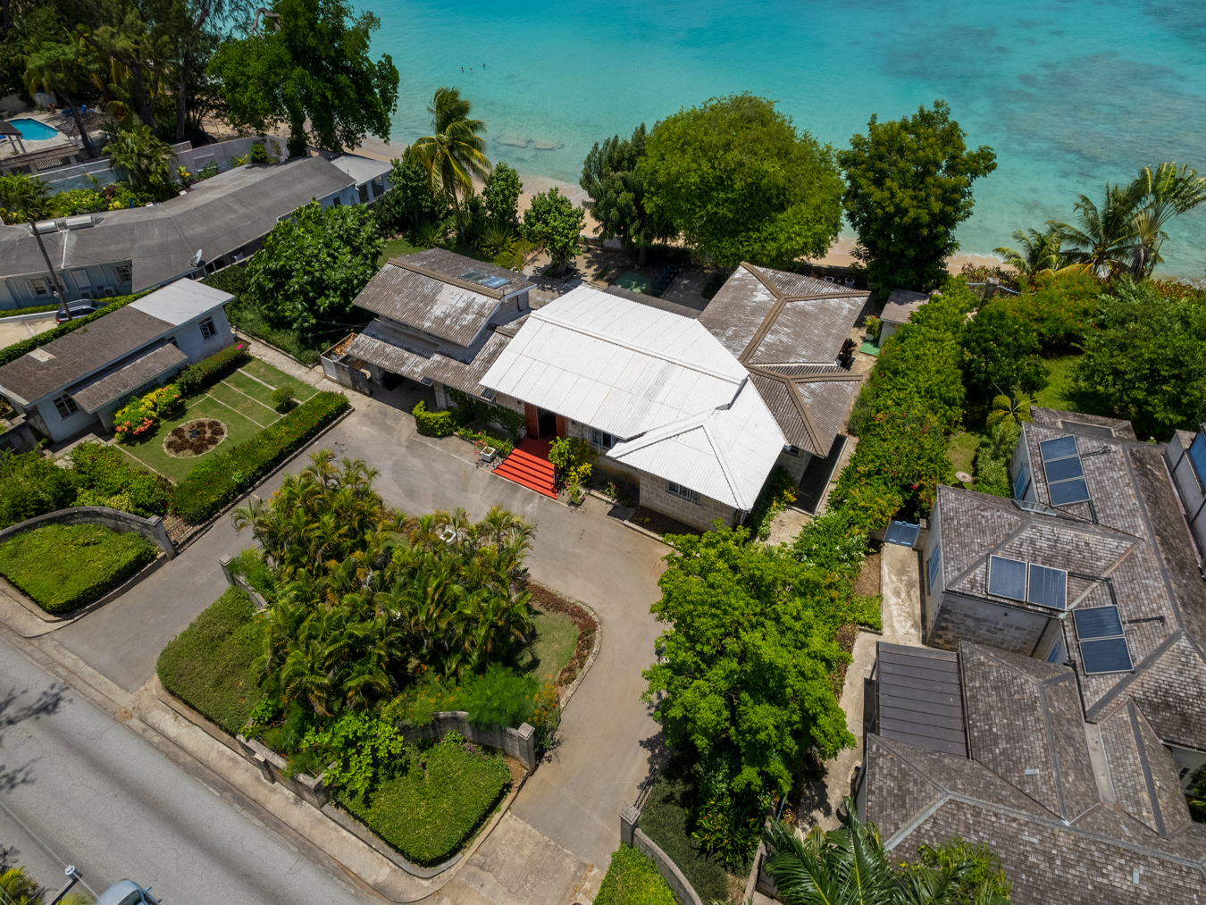Clearwater, a spacious villa set in tropical gardens, and located on the beautiful Gibbes Beach, St. Peter on the West Coast of Barbados. The delightful coral stone villa has an extensive open-plan dining and living area, designed to capture tropical breezes and provide views of the sea, which opens on to a large, covered veranda with a bar. The perfect spot to dine or relax, overlooking the sparkling Caribbean Sea. The large master bedroom is located on the upper floor, with the other three bedrooms are on the ground floor. Homes on this much sought after stretch of beach are few and far between, this is a great opportunity.
