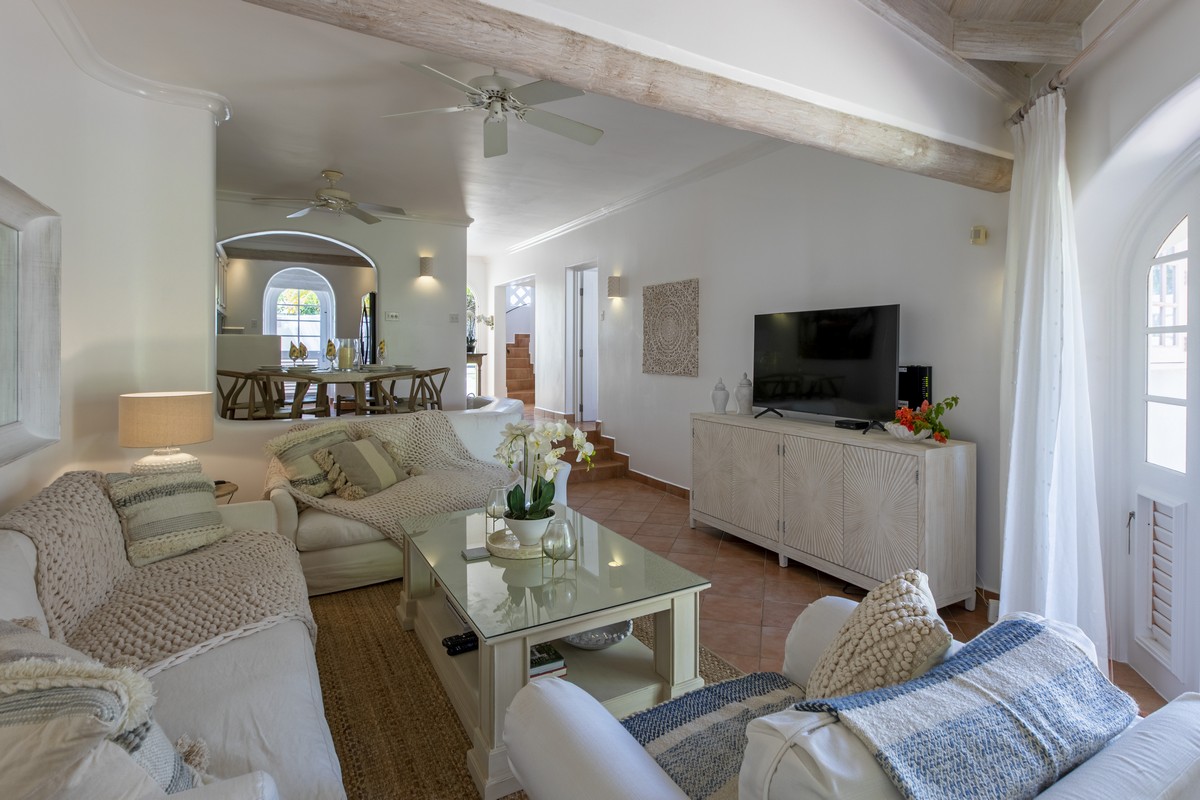 Coconut Shell, a luxurious private Villa is nicely positioned in an elevated, breezy section of the beautifully, tropical landscaped grounds in Sugar Hill. The Villa has 3 air-conditioned bedrooms with the master bedroom with ensuite bathroom situated on the ground floor. Ascend the spiral staircase to the first floor which accommodates the second bedroom also with ensuite bathroom and a third bedroom with the bathroom located just next door. All three bedrooms have their own private terrace.
