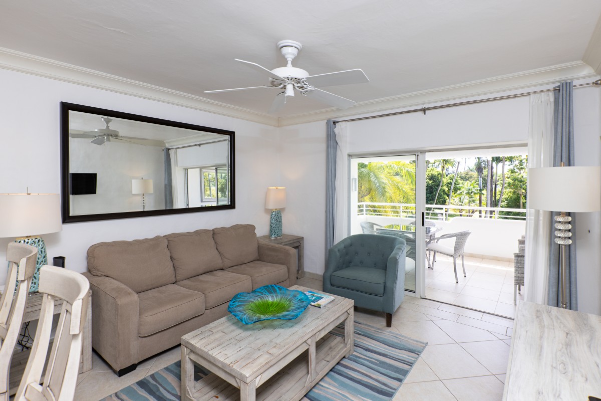 Glitter Bay 414 one-bedroom apartment overlooks the lush gardens and beyond to the Caribbean Sea. It sits on the fourth level on the last block of apartments from the beach, making the views the best of both worlds.