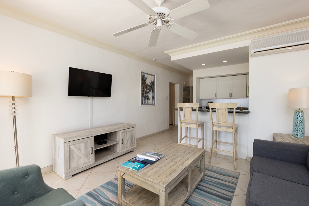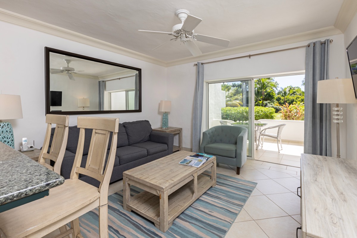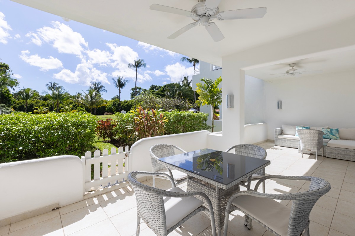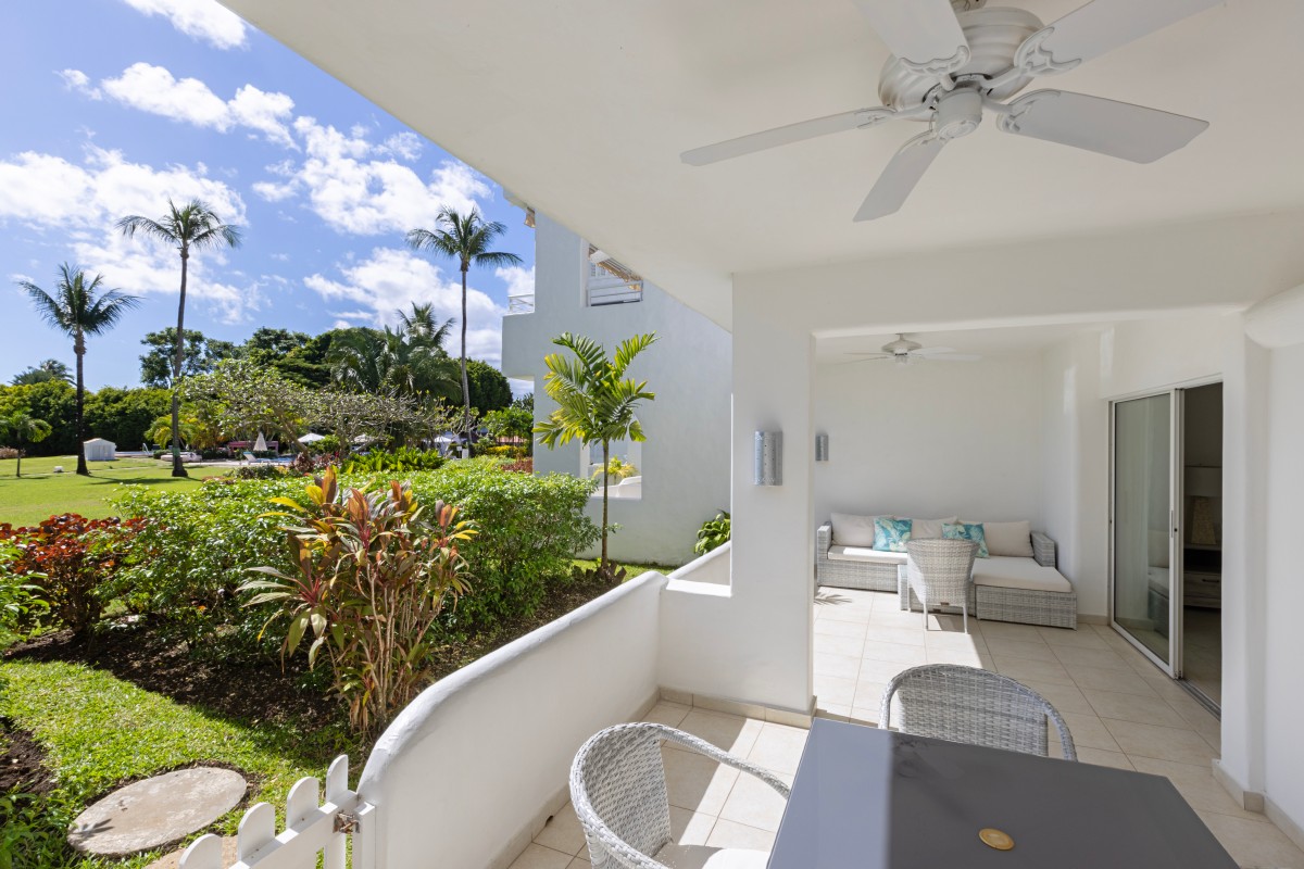 Glitter Bay 112 is a two-bedroom apartment, sitting on the ground level with views of the lush gardens and a peep of the pools. A great turn-key investment for someone looking for a second home in Barbados that they can holiday rent to subsidize the annual running costs.