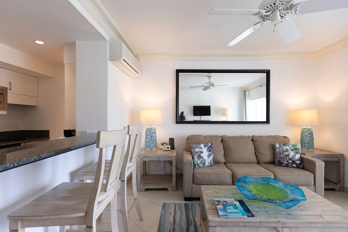 Glitter Bay 314 is a one-bedroom apartment with ocean views. Sitting on the third level on the last block of apartments from the beach, making the views the best of both worlds; lush gardens & the beautiful Caribbean Sea. A great turn-key investment for someone looking for a second home in Barbados that they can holiday rent to subsidize the annual running costs.