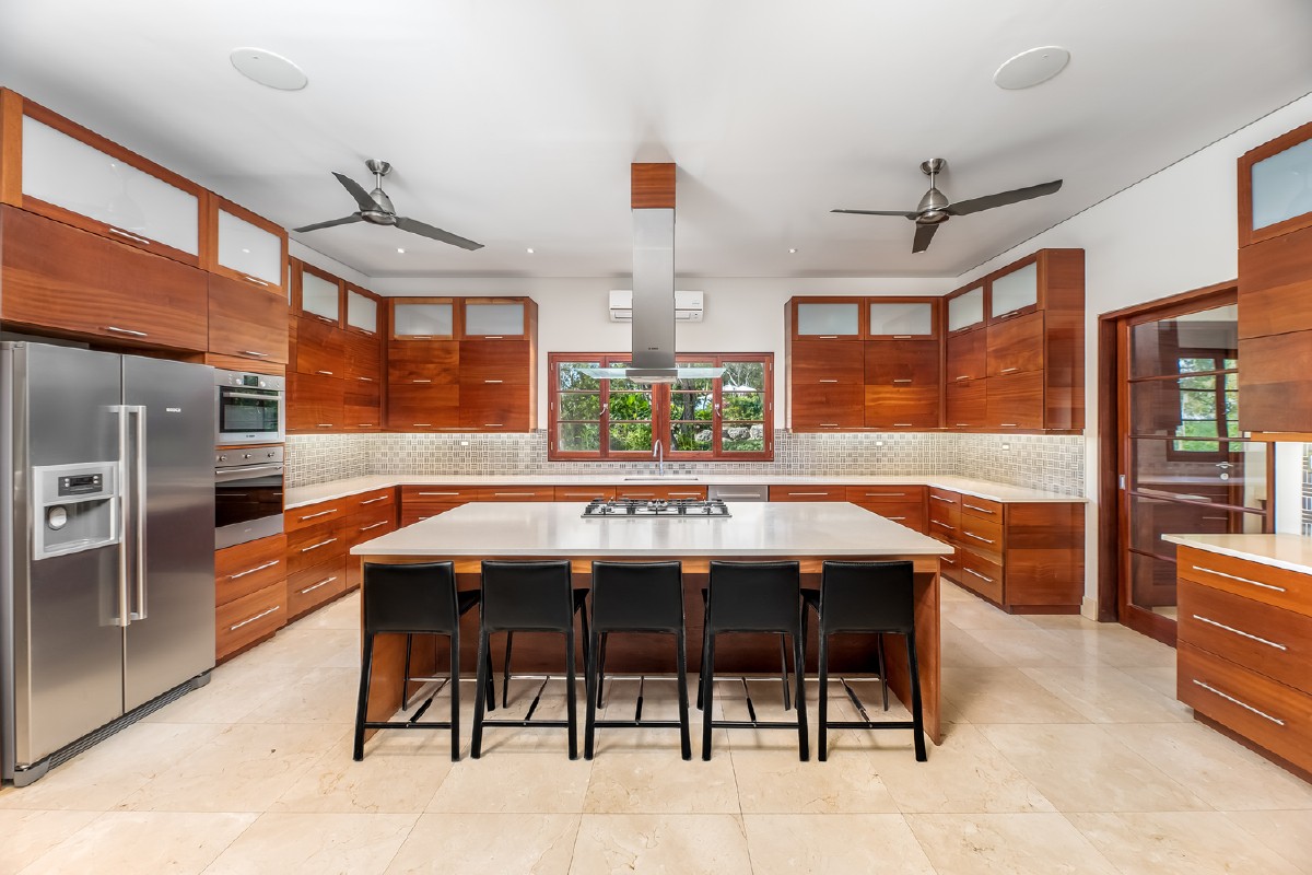The Upper Level - Spacious and benefiting from walk-in closets, four ensuite bedrooms occupy the upper level with three of these bedrooms presenting sea views. The master enjoys a large patio, a walk-in closet with natural ventilation, and in the accompanying ensuite, a full onyx wall accentuates. There is also an office with a full bathroom the size of a bedroom which can be converted if there is a desire.