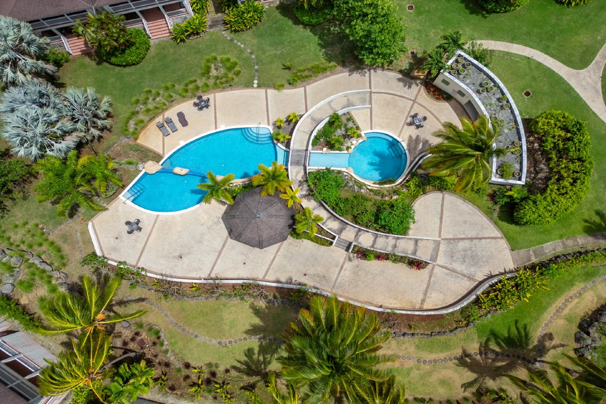 The en-suite primary bedroom also opens onto the patio, inviting in the breeze and garden views. Both bedrooms are air-conditioned for comfort, and ceiling fans are installed throughout the apartment. The home is turnkey and ideal as a full-time residence, a holiday escape, or an investment opportunity.