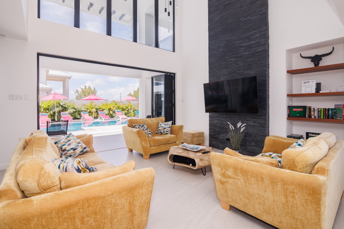 • Seamless Flow: Designed for Barbados’ idyllic climate, large sliding glass doors seamlessly integrate the chic interior with the surrounding decks and patios, perfect for alfresco dining and relaxation.