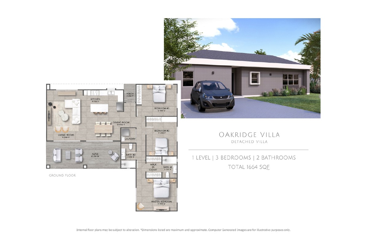 Oakridge β (this design sold out quickly in Phase 1) with only Unit No. 14 remaining for Sale. It is a spacious three-bedroom, two-bathroom home with an open-plan layout, a fully equipped kitchen, master suite with walk-in closet, large patio, paved parking, fenced backyard, and landscaped garden.