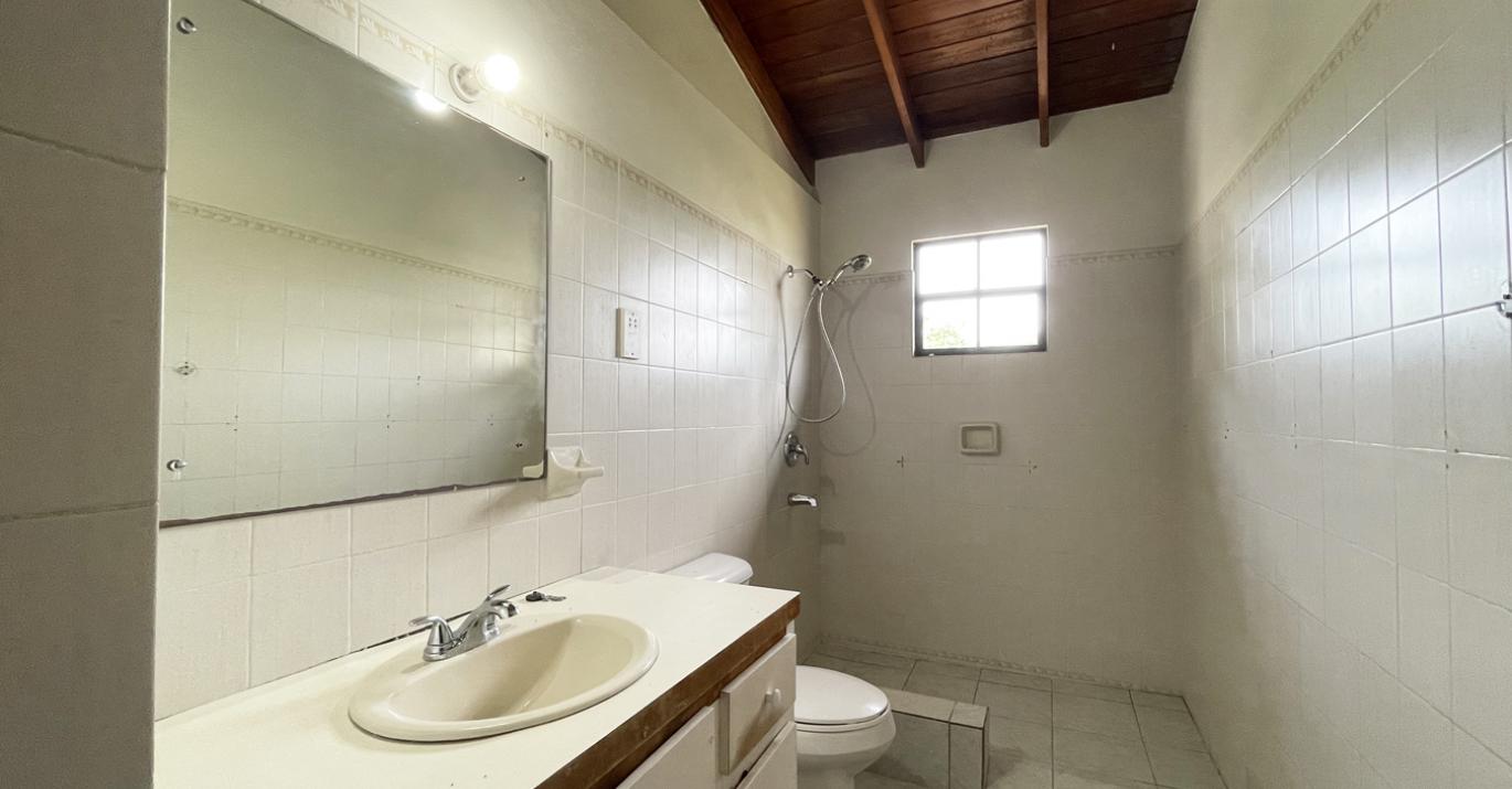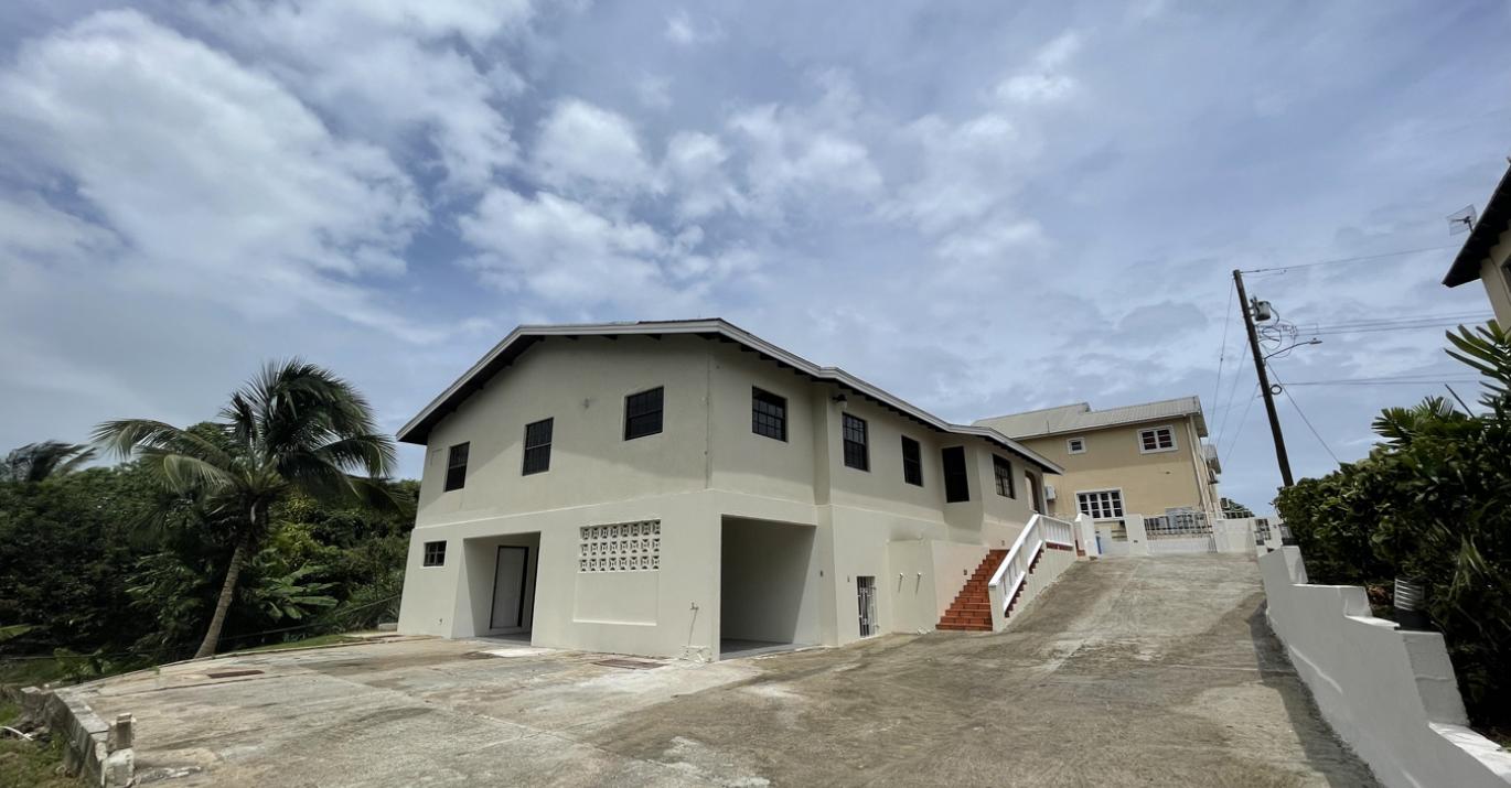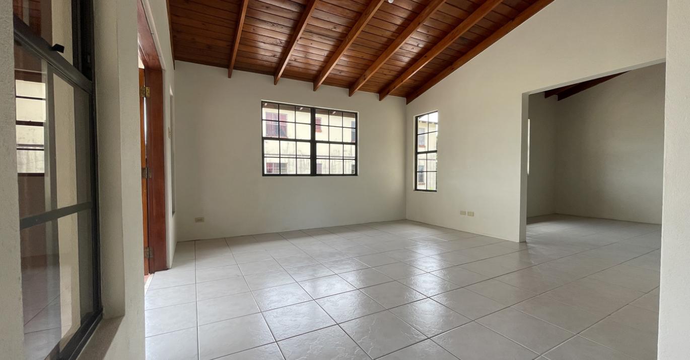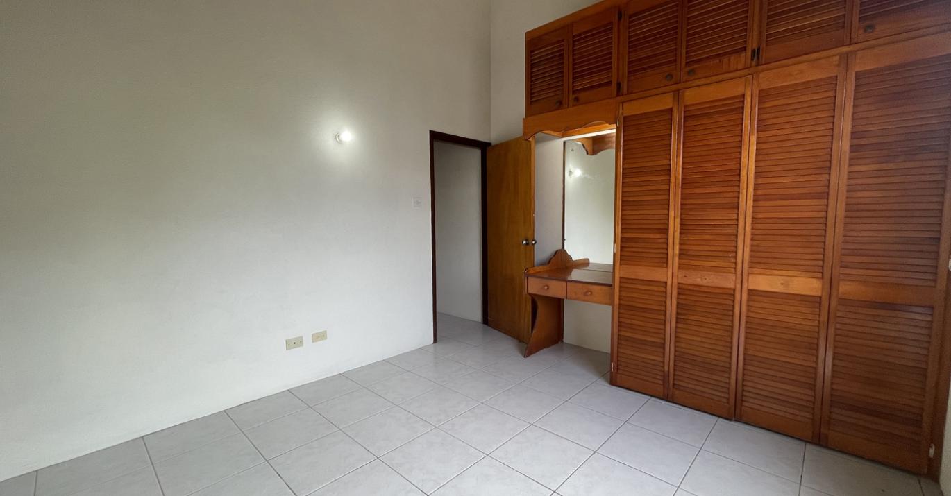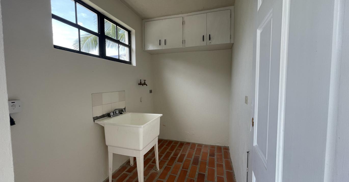 The main entry leads from a small front patio into a large open plan living, dining and entertainment room which offers high ceilings and natural light. From the living room is a side patio overlooking the garden. All three bedrooms are located on the windward side of the home and offer large cupboards with ample storage. The main bedroom has an en-suite bathroom whilst the two other bedrooms share a bathroom. The kitchen is at the rear of the property which also has an internal stairwell that leads to another bedroom and en-suite bathroom.