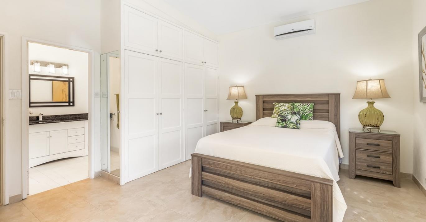 The air-conditioned 3-bedroom ensuite rooms all have queen size beds and the master includes a shower /tub, while the remaining bedrooms offer walk-in showers. There is direct access from the master suite to the large 23’ x 19’ infinity pool and bar area which is fitted with sofas and chairs overlooking the pool.