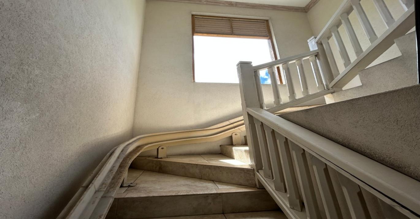 The two spaces can be lived in combined or separately. There is a staircase just off the kitchen which joins the two spaces via the garage. The staircase has been outfitted with an electric chair lift.