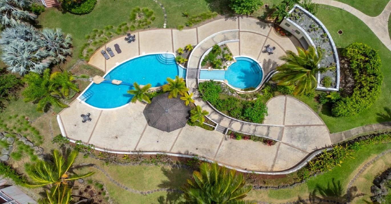 The en-suite primary bedroom also opens onto the patio, inviting in the breeze and garden views. Both bedrooms are air-conditioned for comfort, and ceiling fans are installed throughout the apartment. The home is turnkey and ideal as a full-time residence, a holiday escape, or an investment opportunity.