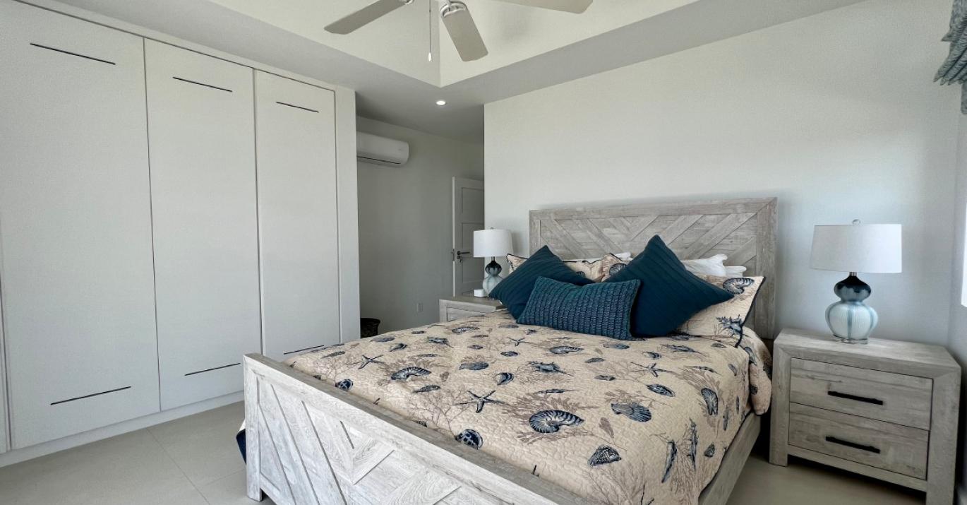 There are 3 bedrooms on the upper level including the master suite which has its own en-suite bathroom and walk in closet. The other two guest suites are equally well appointed with their own bathrooms. The master room and one guest room both lead onto a large balcony, a brilliant place to take in the beautiful sunsets. There is a 4th bedroom on the entrance level. This has a full bathroom which doubles as a guest's powder room. All rooms are equipped with ample storage, AC units and fans.